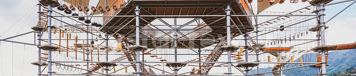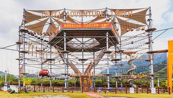 單層高達 4.3m,總高達 19.8m,內(nèi)部以晶體結(jié)構(gòu)搭建架空層 1-4 個步道層級,打造超過 680m 長的空中游樂路線,開模制作,國內(nèi)獨一無二,雙重保護更安全,利用防呆裝置做到安全萬無一失。其中包含 87 個運動項目(包含尖叫滑梯、巨形秋千、低空蹦極),能滿足 150 個游客同時進行冒險體驗,被譽為 " 運動游樂之王 "。