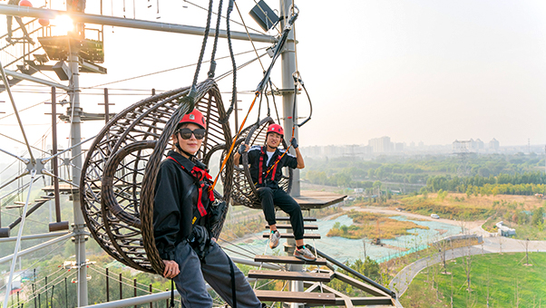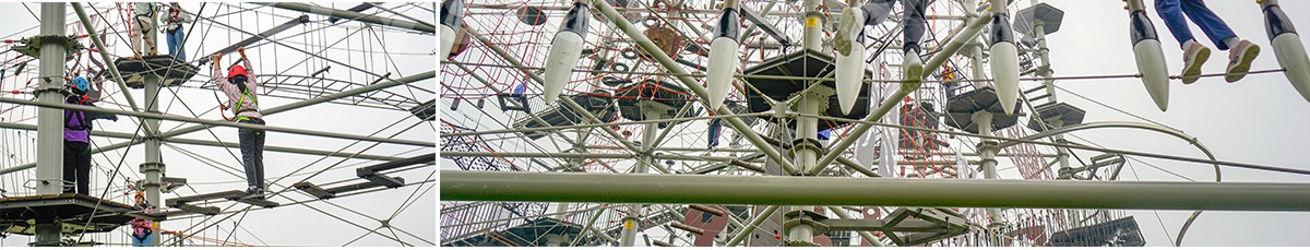該設(shè)備為目前中國極具影響力的地標性運動游樂綜合體項目,可同時容納超 200 人,該水晶塔總高 29.8m,分為 6 層。適應(yīng)人群廣泛,可為周末休閑、文化體驗、團建社交、極限運動等核心需求者提供充滿幻想的新去處。節(jié)能六角形概念起源于晶體結(jié)構(gòu),每 4 根立柱為一個晶體結(jié)構(gòu),以此發(fā)展國內(nèi)獨創(chuàng)的水晶結(jié)構(gòu)塔,使“雙奧之城”成為北京的獨特名片。