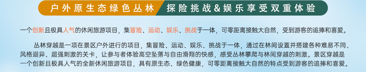 滿足各年齡段、團體及個人游客進行挑戰(zhàn)、團建、競賽等叢林穿越探險娛樂