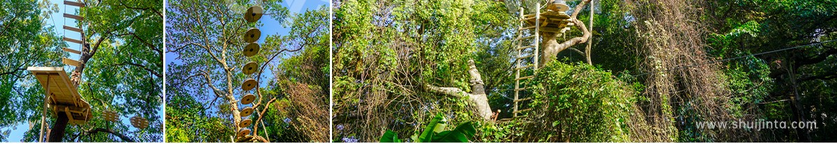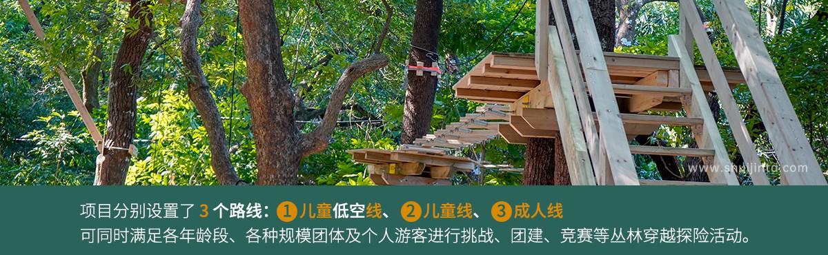 羅浮山景區(qū)叢林穿越,結(jié)合景區(qū)獨(dú)有的茂密叢林,結(jié)合爬、滑、游、跨、跳、飛等運(yùn)動(dòng),整個(gè)項(xiàng)目設(shè)計(jì)總長近 1km,分別設(shè)置了 3 個(gè)路線:兒童低空線、兒童線和成人線,可以同時(shí)滿足各個(gè)年齡段、各種規(guī)模團(tuán)體及個(gè)人的游客進(jìn)行個(gè)人挑戰(zhàn)、團(tuán)建、競賽等叢林穿越探險(xiǎn)活動(dòng)。