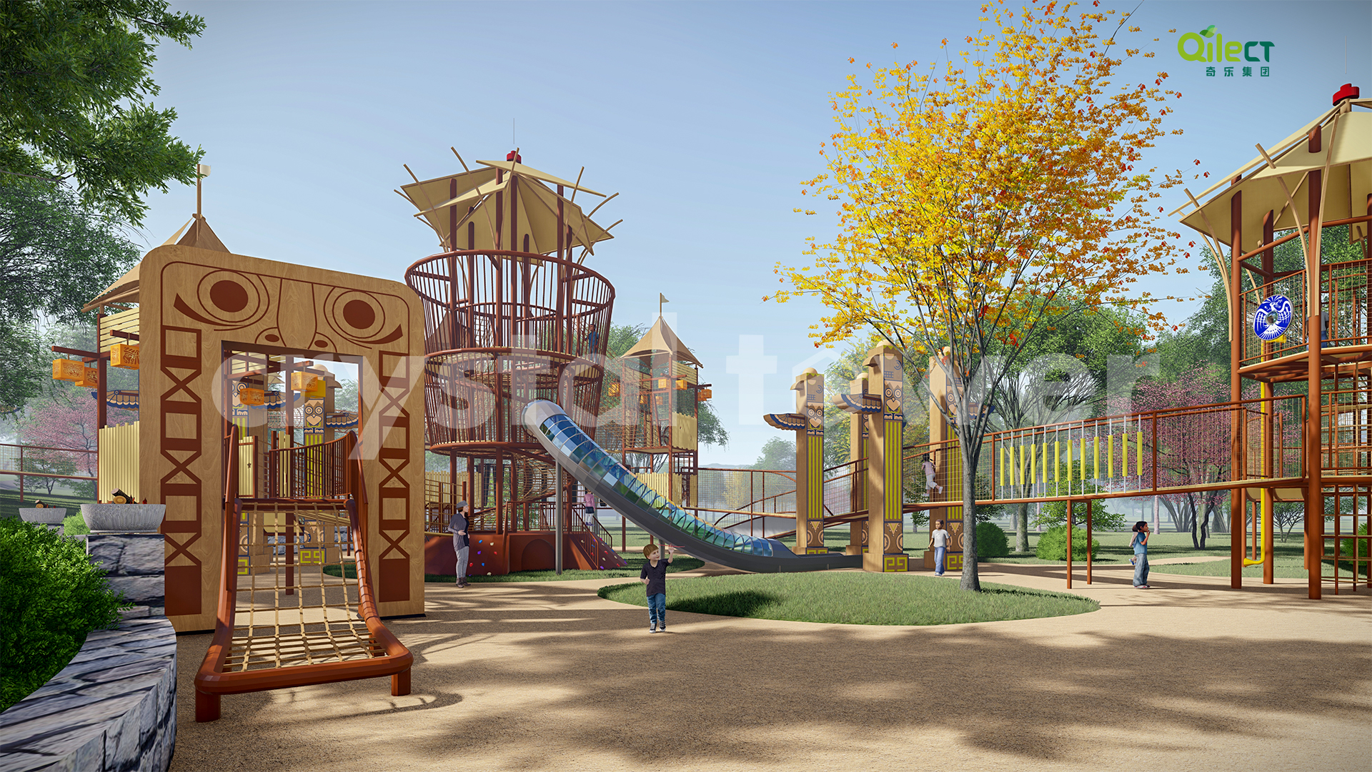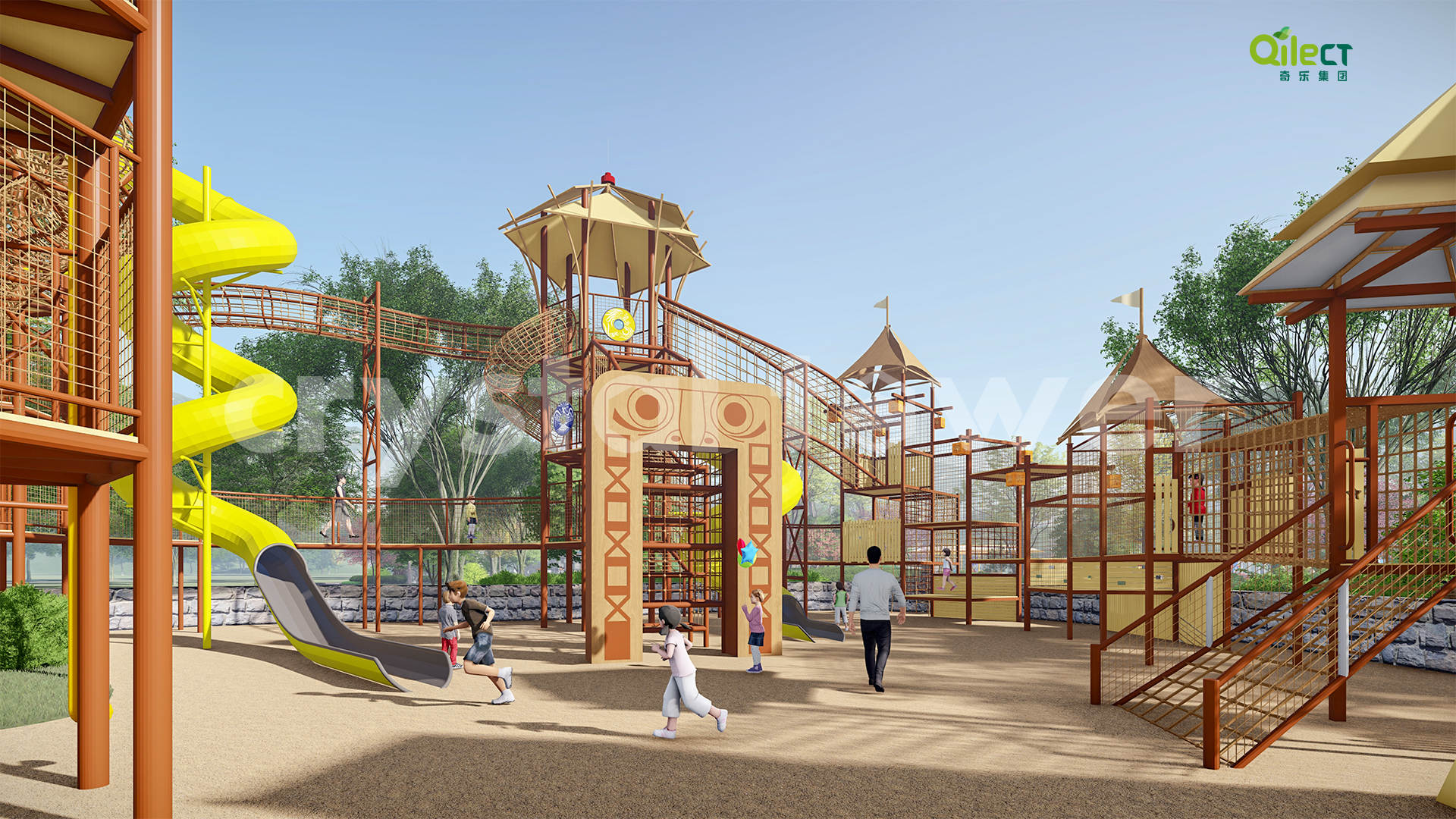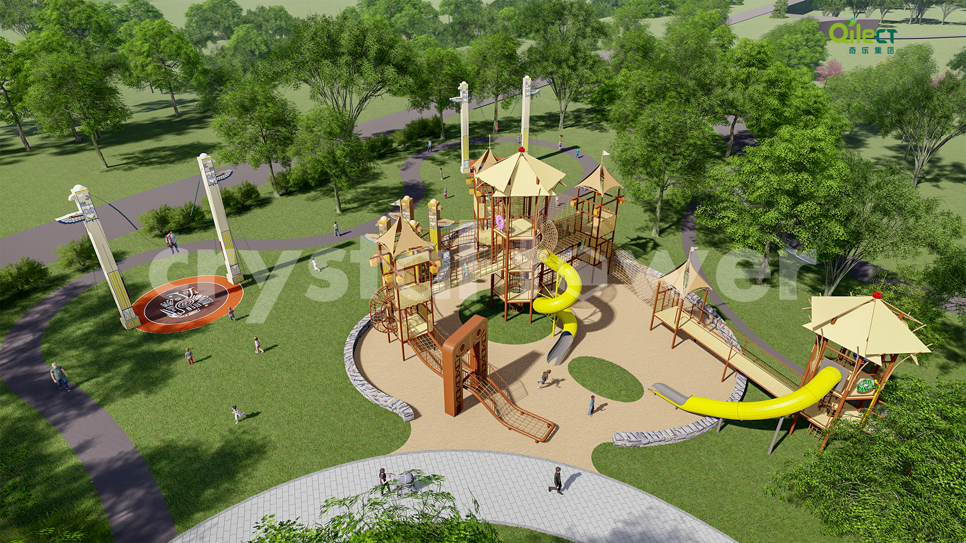 以瑪雅文化為主題風格,圍繞瑪雅部落、奪寶奇兵、瑪雅迷城及瑪雅城堡等布局功能區(qū)域,適合 3-15歲或親子類游玩者,全方位打造“休閑運動、親子娛樂、沉浸式 IP 體驗、戶外科普、生活素質(zhì)體驗”的親子游樂休閑度假目的地。
